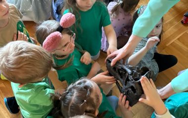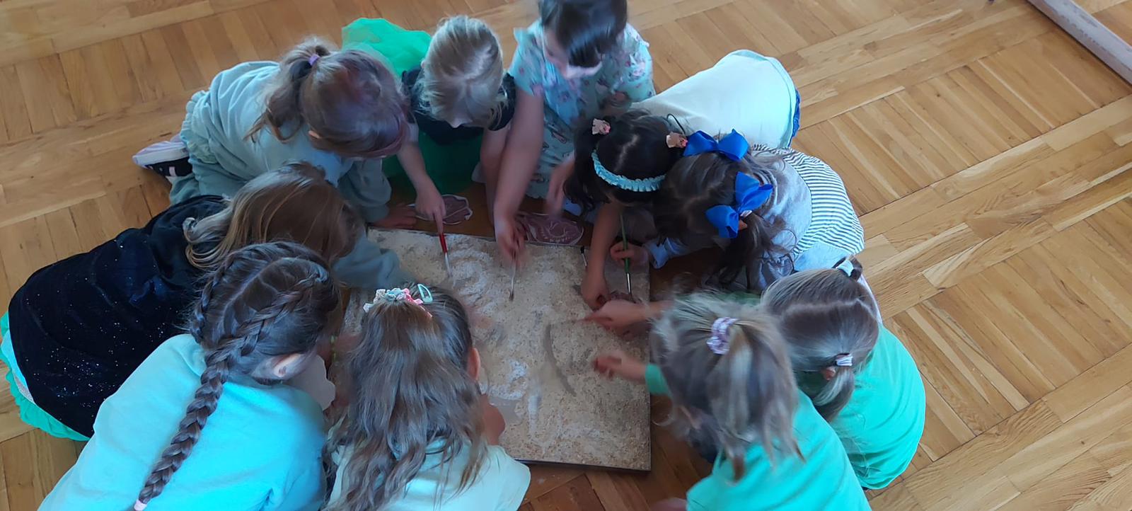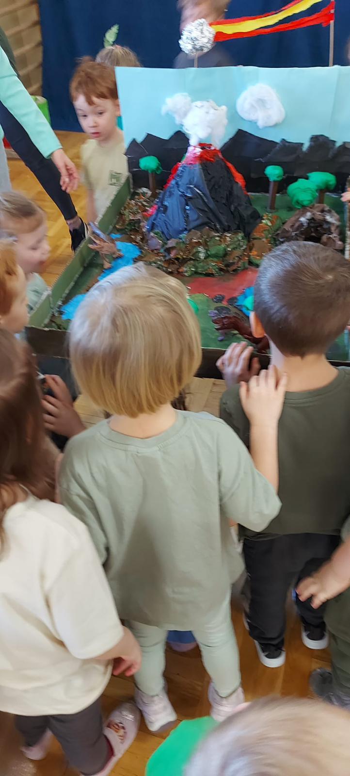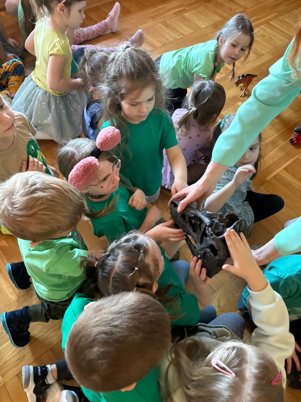 To był dzień pełen emocji, odkryć i prehistorycznych przygód! Podczas warsztatów dzieci przeniosły się miliony lat wstecz, aby poznać fascynujący czas dinozaurów. Dowiedziały się, kiedy żyły te niezwykłe stworzenia i jak wyglądał świat w epoce dinozaurów. Ogromne wrażenie zrobił na wszystkich eksperyment z wybuchem wulkanu – było widowiskowo i bardzo ekscytująco! Mali odkrywcy wcielili się również w rolę paleontologów i wzięli udział w wykopaliskach. Z wielkim zaangażowaniem odkopywali ukryte „skamieniałości”, ucząc się cierpliwości i precyzji. Na zakończenie warsztatów wszyscy zamienili się w dinozaury podczas radosnej zabawy ruchowej. Było tupanie, ryczenie i mnóstwo śmiechu. To był dzień pełen radości, nauki przez zabawę i niezapomnianych wrażeń!