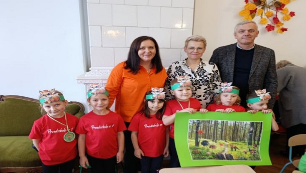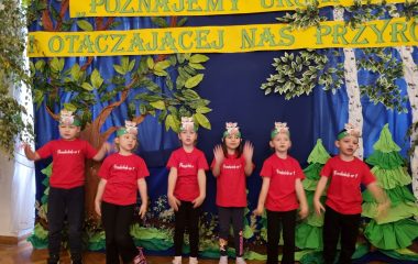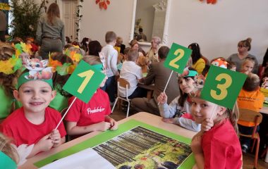 Podczas konkursu dzieci miały okazję zmierzyć się z różnorodnymi zadaniami dotyczącymi przyrody – rozpoznawały zwierzęta leśne, rozwiązywały zagadki, odpowiadały na pytania dotyczące środowiska naturalnego oraz wykazywały się szeroką wiedzą na temat lasu. „Motylki” zaprezentowały się z jak najlepszej strony – z entuzjazmem i dużym zaangażowaniem uczestniczyły w każdej aktywności, wykazując się wiedzą, spostrzegawczością oraz umiejętnością współpracy. Nie zabrakło również części artystycznej – dzieci z radością zaśpiewały piosenkę „Przebojowa jesień”, wprowadzając wszystkich obecnych w radosny, jesienny nastrój.