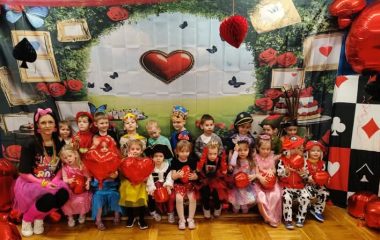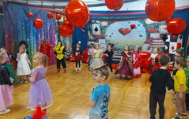 W dniu 11.02.2026 r. nasze przedszkole zmieniło się nie do poznania, a wszystko to za sprawą motywu przewodniego: Alicja w Krainie Czarów! To był dzień pełen magii, radosnego śmiechu i niesamowitych przygód. Nasze przedszkolaki w swoich przepięknych strojach brały udział w szalonych tańcach i zabawach ruchowych, których nie powstydziłby się sam Szalony Kapelusznik! Ogromne podziękowania kierujemy do Rady Rodziców za przygotowanie przepięknych, bajkowych dekoracji. Dzięki Waszej kreatywności poczuliśmy się jak w prawdziwej Krainie Czarów! Dziękujemy również wszystkim Rodzicom, którzy włączyli się w pomoc przy dekorowaniu sali. Wasze wsparcie i zaangażowanie sprawiły, że ten bal był wyjątkowy i na długo zapadnie w pamięci dzieci.