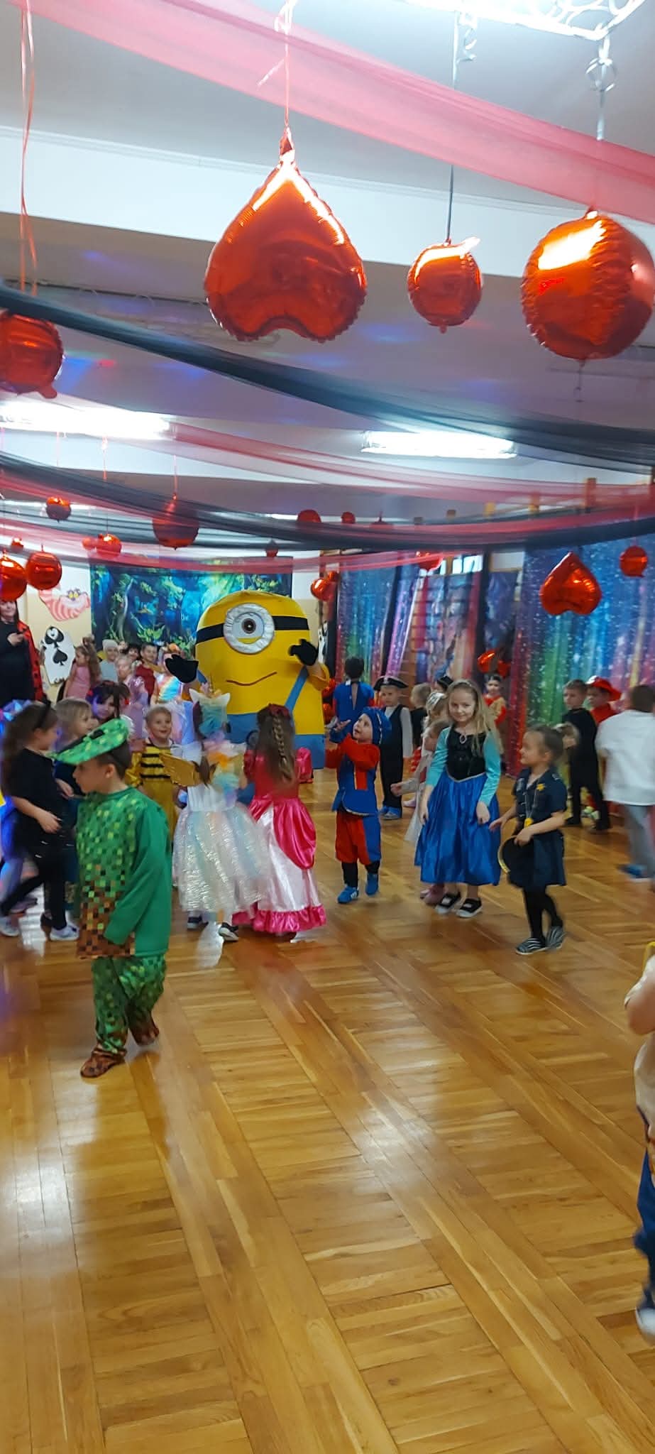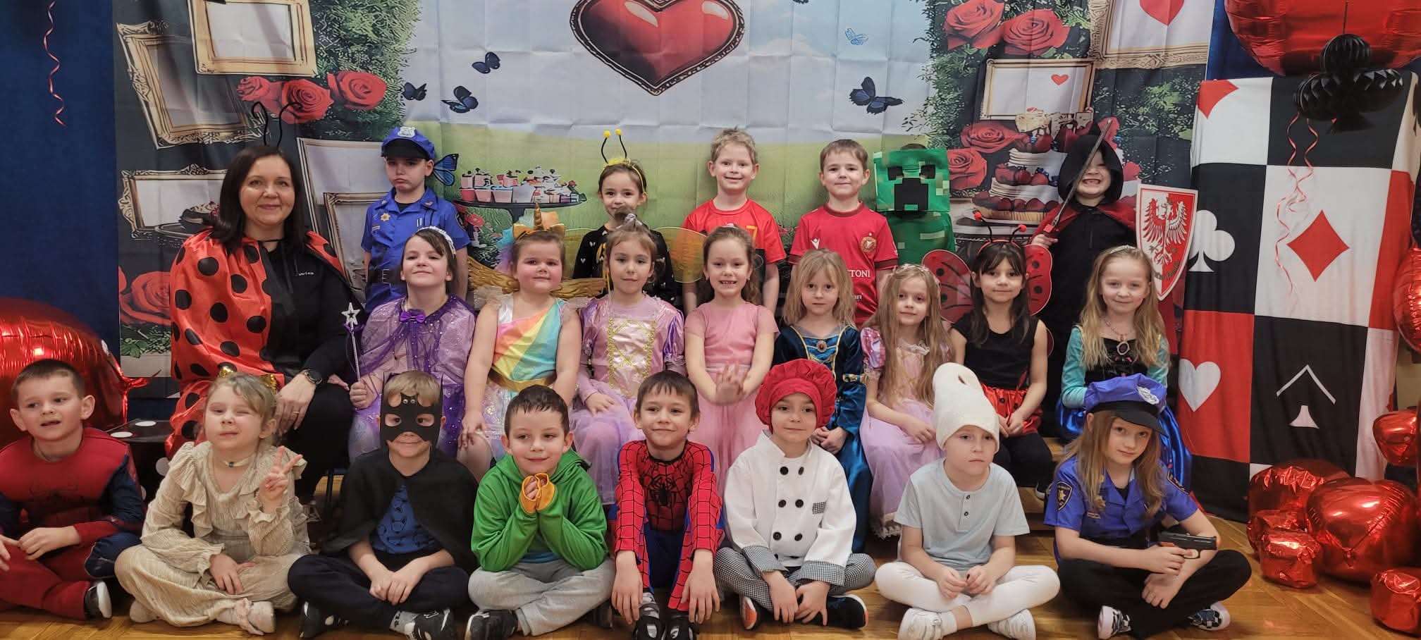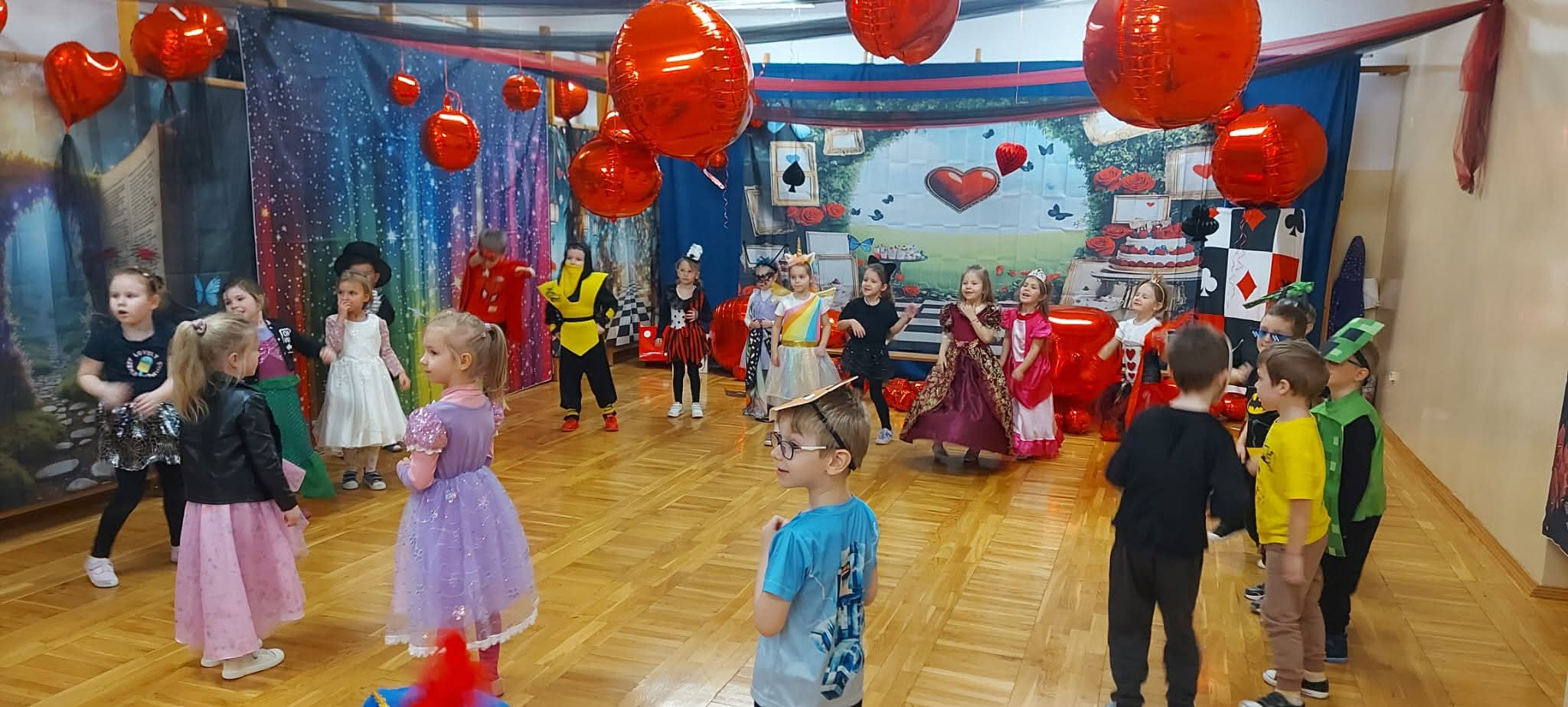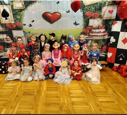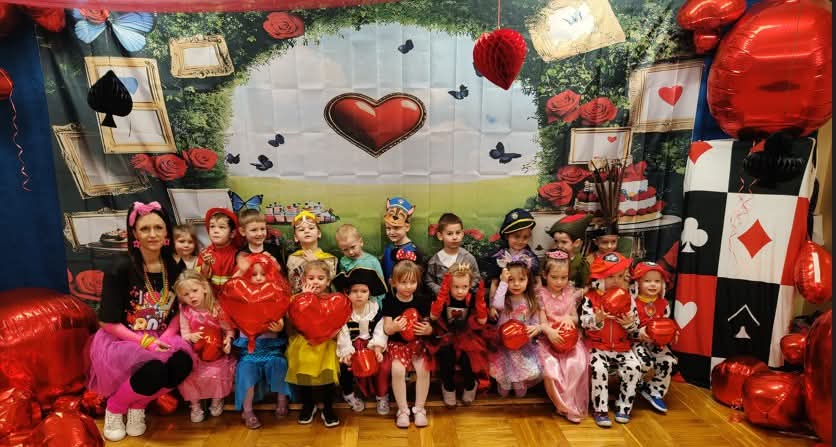 W dniu 11.02.2026 r. nasze przedszkole zmieniło się nie do poznania, a wszystko to za sprawą motywu przewodniego: Alicja w Krainie Czarów! To był dzień pełen magii, radosnego śmiechu i niesamowitych przygód. Nasze przedszkolaki w swoich przepięknych strojach brały udział w szalonych tańcach i zabawach ruchowych, których nie powstydziłby się sam Szalony Kapelusznik! Ogromne podziękowania kierujemy do Rady Rodziców za przygotowanie przepięknych, bajkowych dekoracji. Dzięki Waszej kreatywności poczuliśmy się jak w prawdziwej Krainie Czarów! Dziękujemy również wszystkim Rodzicom, którzy włączyli się w pomoc przy dekorowaniu sali. Wasze wsparcie i zaangażowanie sprawiły, że ten bal był wyjątkowy i na długo zapadnie w pamięci dzieci.