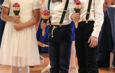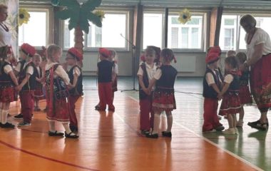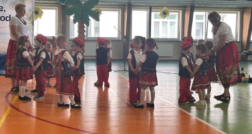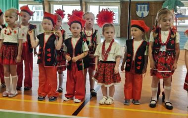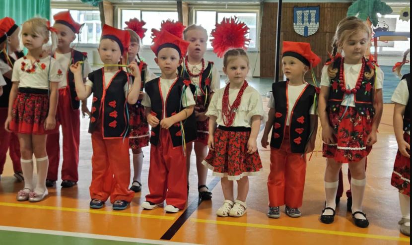Dzieci młodsze, jak i starsze przygotowały na ten dzień wyjątkowe występy. „Misie” i „Żabki” zaprezentowały ludowe tańce: Krakowiaka oraz pełną wdzięku Koziorajkę, występując w barwnych, regionalnych strojach i zdobywając serca zgromadzonej publiczności. Dzieci zachwyciły swoją naturalną radością, energią i zaangażowaniem, pokazując, że tradycje ludowe mogą być pięknie pielęgnowane już od najmłodszych lat. Ich uśmiechy i pewność siebie na scenie były dowodem na wspaniałą atmosferę, jaką tworzy nasze przedszkole dla swoich podopiecznych.