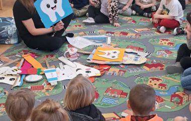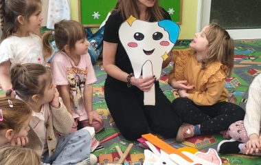 Dzisiaj nasze przedszkolaki odwiedził wyjątkowy gość – Pani stomatolog Agnieszka Kozubska-Markus, która przeprowadziła dla dzieci fantastyczne warsztaty stomatologiczne! Dzięki temu spotkaniu wizyta u dentysty nie będzie już budzić lęku, a dbanie o ząbki stanie się dla maluchów codzienną, radosną przygodą. Podczas warsztatów nasze przedszkolaki: Dowiedziały się, jak prawidłowo szczotkować zęby, by lśniły jak perły – trening na modelach szczęk sprawił im mnóstwo frajdy! Poznały listę „przyjaciół” i „wrogów” zdrowego uśmiechu – teraz już każdy wie, dlaczego jabłuszko jest lepszym wyborem niż cukierek. Na zakończenie spotkania Pani doktor przygotowała dla wszystkich niespodziankę – każde dziecko otrzymało w prezencie własną szczoteczkę do zębów! To był wspaniały gest, który od razu zmotywował maluchy do testowania zdobytej wiedzy w praktyce.